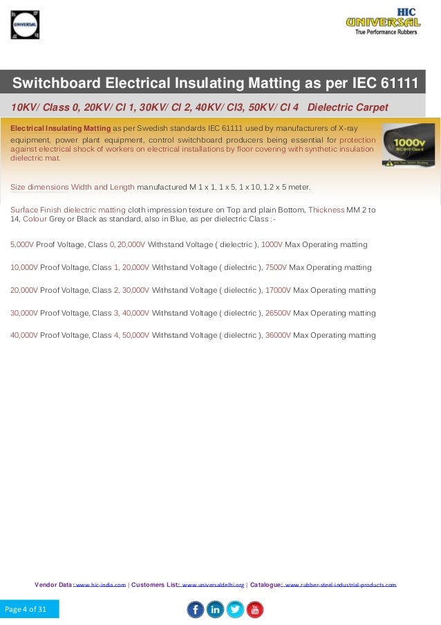 T d stock and distribute a complete range of iec61111 insulating matting for electrical safety protection and working on low medium and high voltage substations and switchgear up to 33kv the iec61111 standard provides a selection category for low voltage 1000v to high voltage 36kv.