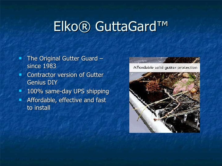 Our main products are elko guttagard for contractors and gutter genius diy for homeowners.