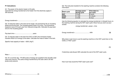 Energy efficiency calculations ks3.